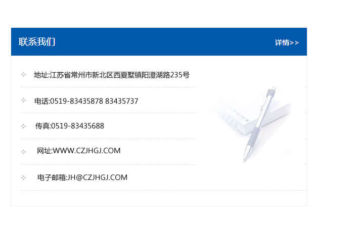 傳真:0519-83435688    郵編:213135    網址:WWW.czjhgj_com.ycyiyi.com    電子郵箱:JH@czjhgj_com.ycyiyi.com
